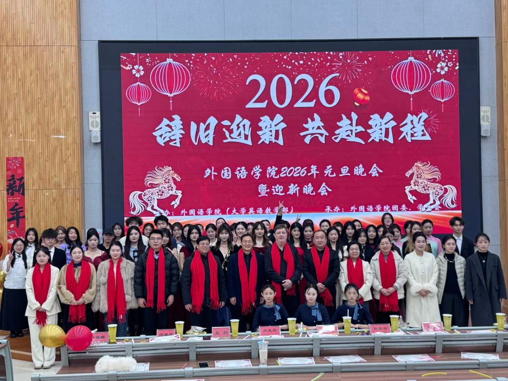 12月29日,外国语学院(大学英语教学部)在增信楼113举办2026年“辞旧迎新,共赴新程”师生元旦晚会,学院领导、师生代表齐聚一堂,共迎新年。