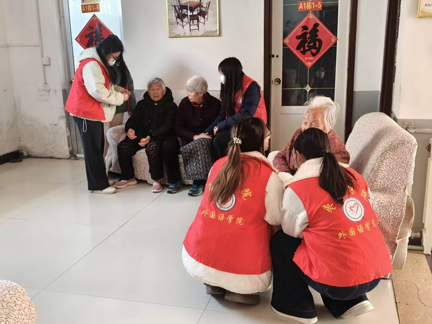此外,志愿者们还带来了外语歌曲演唱、诗朗诵、红色经典诵读等文艺节目,悠扬的歌声、真挚的表演赢得了老人们的阵阵掌声,现场气氛温馨融洽。同学们充分发挥外语专业优势,用简单的外语问候与老人互动,传递别样温情,让老人们感受到青春的活力与时代的温度。