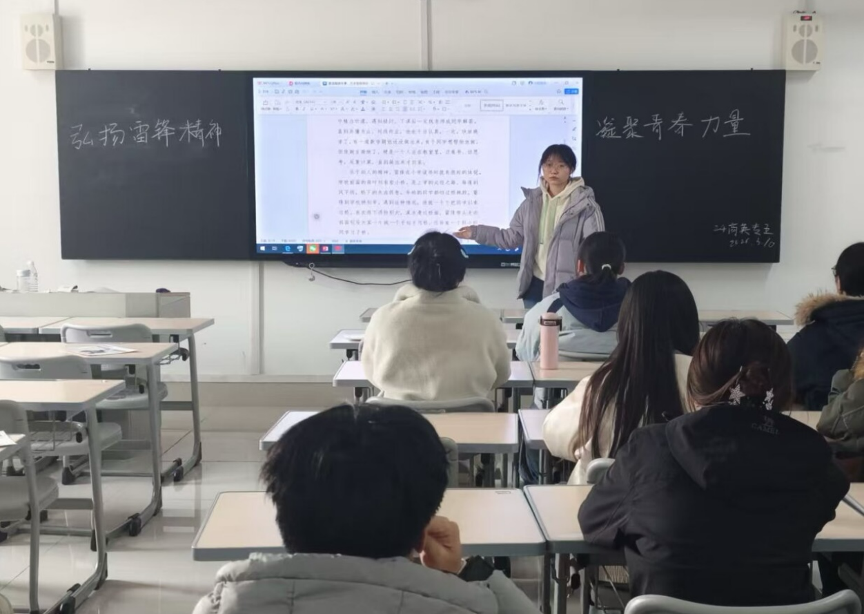 活动伊始,各团支部通过专题学习、雷锋事迹宣讲、《雷锋日记》诵读等形式,带领团员们重温雷锋同志爱岗敬业、无私奉献、乐于助人、艰苦奋斗的感人事迹,深刻阐释新时代雷锋精神的核心要义。结合外语专业特色,部分团支部开展雷锋精神双语学习,用英语讲述雷锋故事、翻译雷锋语录,以语言为桥,让雷锋精神在跨文化表达中焕发新活力,既夯实专业能力,又厚植家国情怀。交流分享环节,团员们踊跃发言,结合校园生活、志愿服务、学业帮扶等经历,畅谈对雷锋精神的理解与践行体会。同学们纷纷表示,要将雷锋精神内化于心、外化于行,以实际行动践行奉献精神,勇担青春使命。