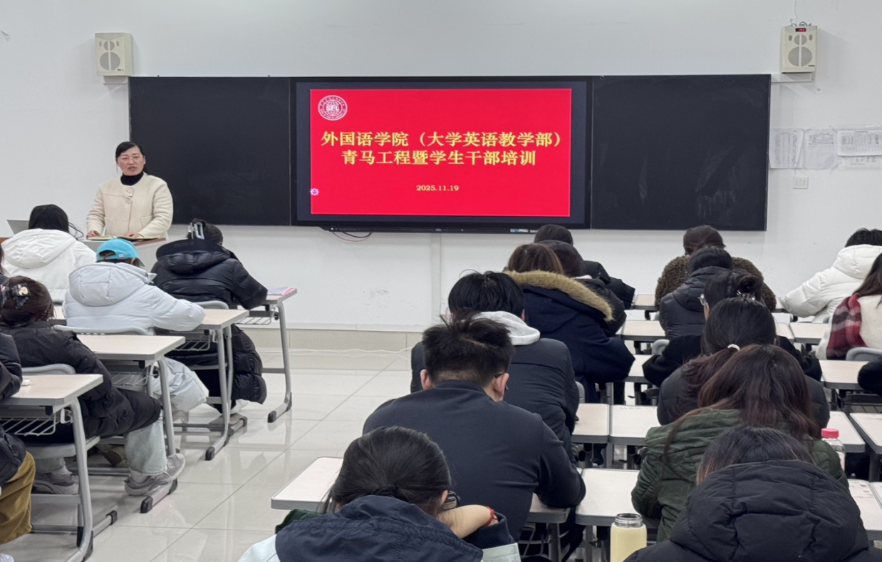 为深入学习贯彻习近平新时代中国特色社会主义思想,增强学生干部的工作能力和政治素养,11月19日,外国语学院(大学英语教学部)在豁然楼A112举办“青马工程”学生干部培训会。本次培训由学院团委书记张婷主讲。学生会自律委员会主席团、各部部长参加会议。